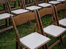 RUSTIC RENTALS Farm Tables & Chairs 96" L x 40" W Farm Table Fruitwood Ivory Seat Chestnut Cross Back Chair Driftwood Cross Back Chair Lighting Wine Barrel Bar Rustic Portable Bar Rustic Cooler Rustic Flooring